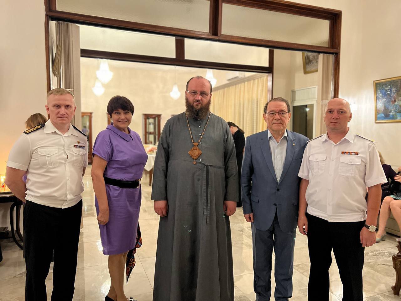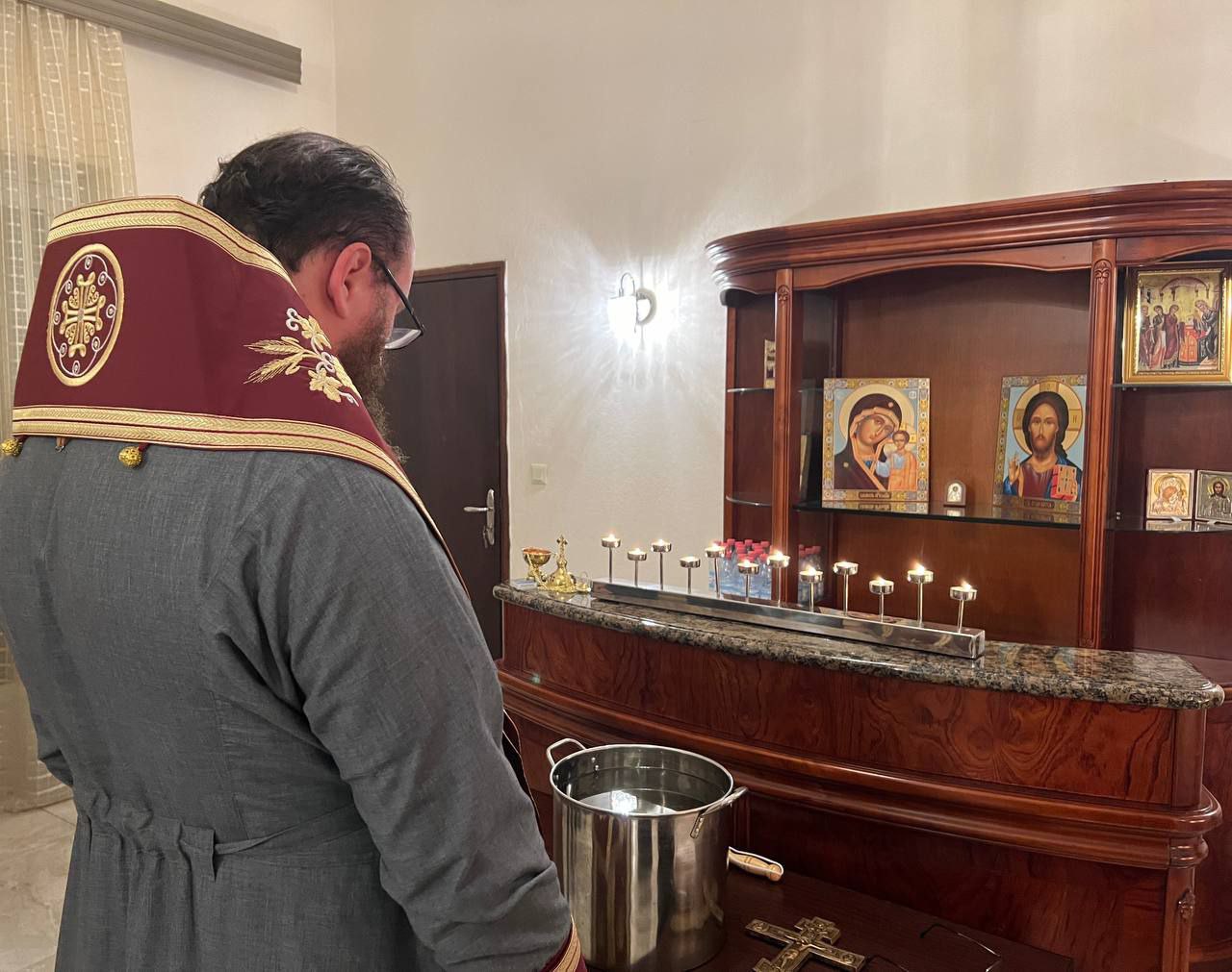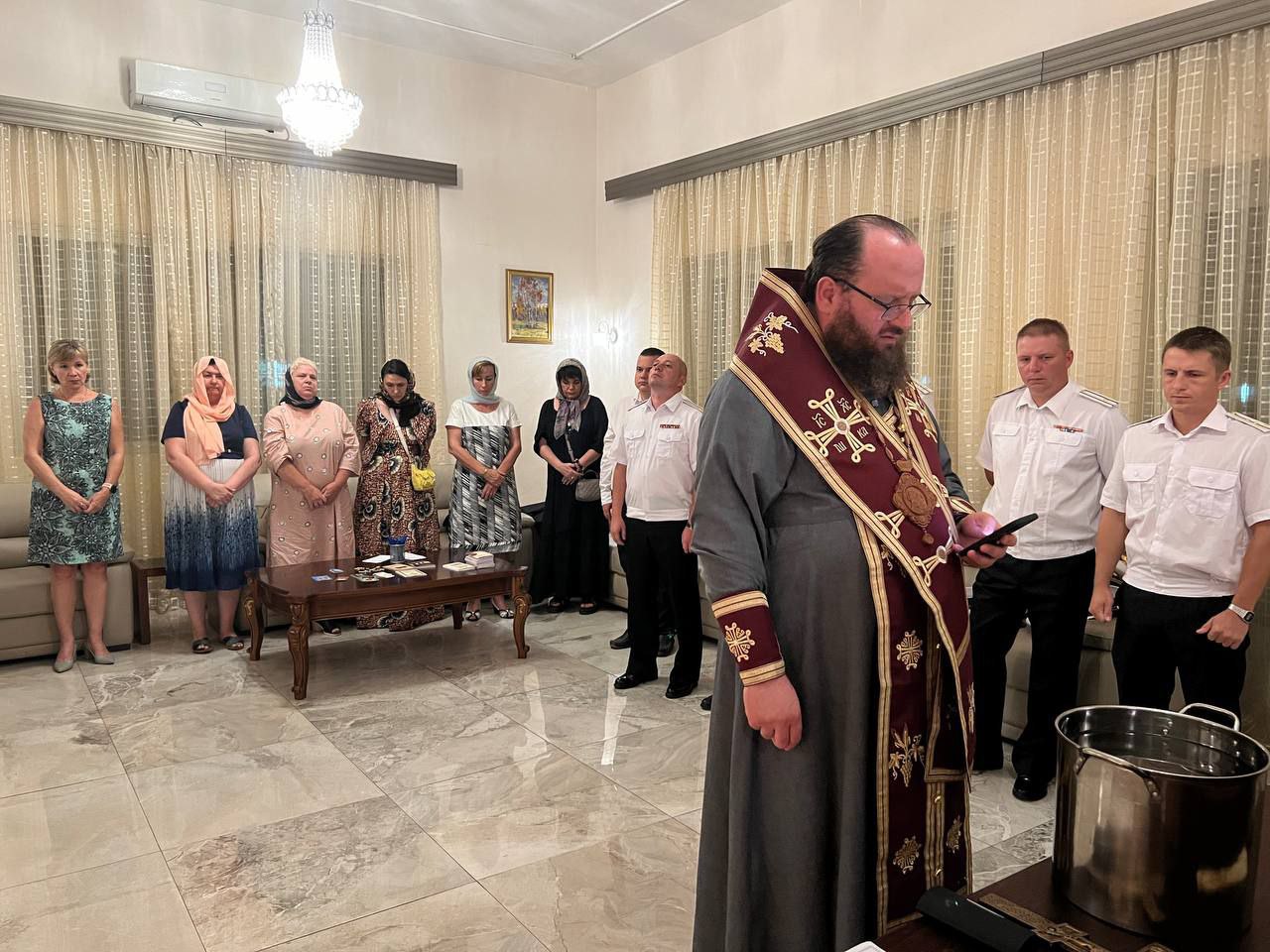 In the evening, the hierarch celebrated the Blessing of the Waters and a requiem litiya at the Russian Embassy. The service was attended by H.E. Yevdokimov, Ambassador Extraordinary and Plenipotentiary of the Russian Federation to the Republic of Benin and the Togolese Republic, his wife, sailors from the large Russian Navy frigate ‘Neustrashimy’ that arrived in Cotonou on a business visit on that day, as well as other compatriots.