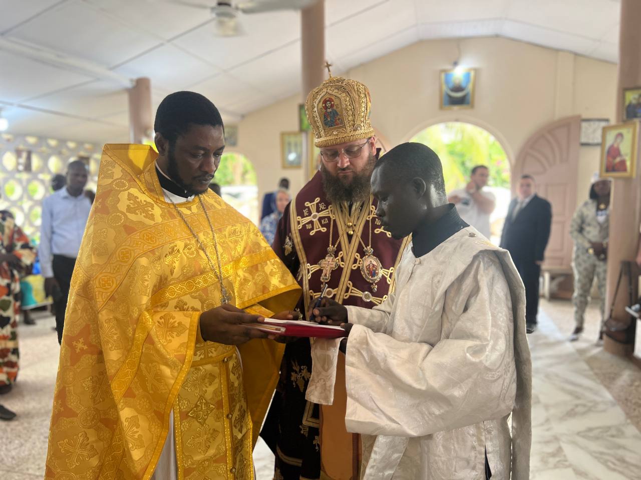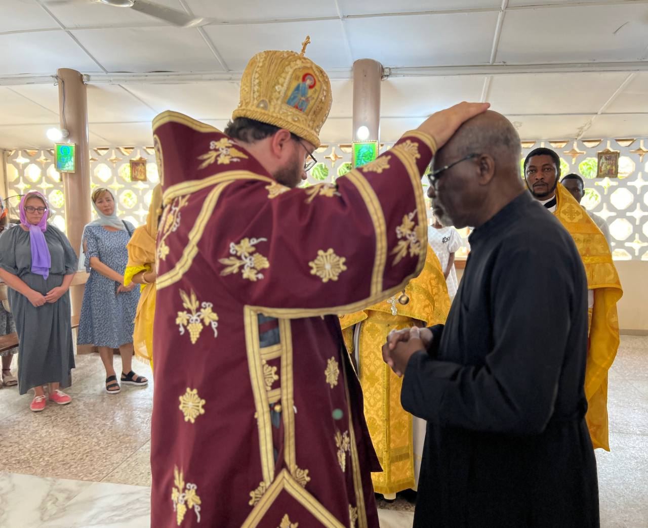 After the Great Entrance, Metropolitan Konstantin elevated deacon Christodoulos Ocheba from Uganda to the rank of priest.
