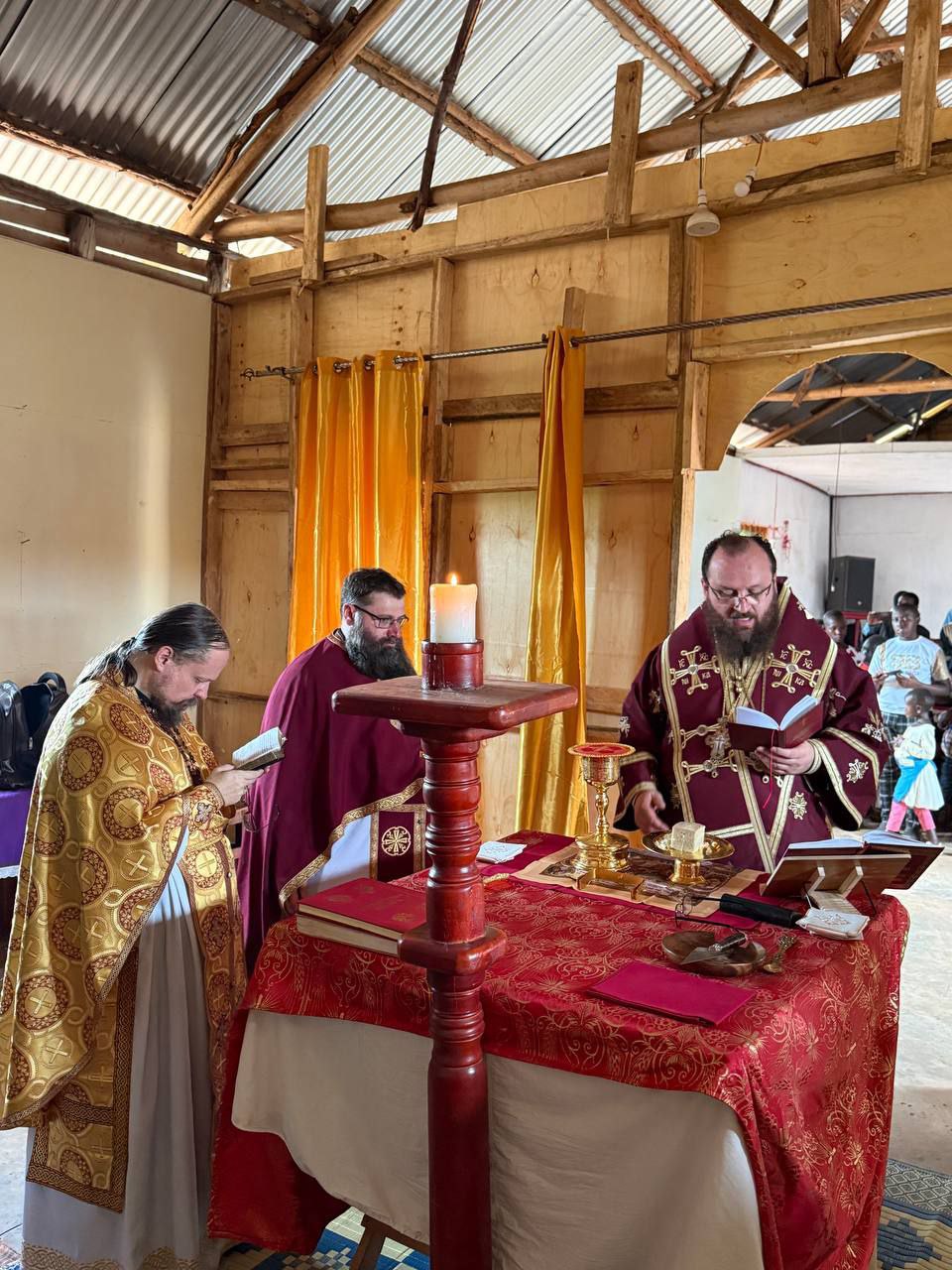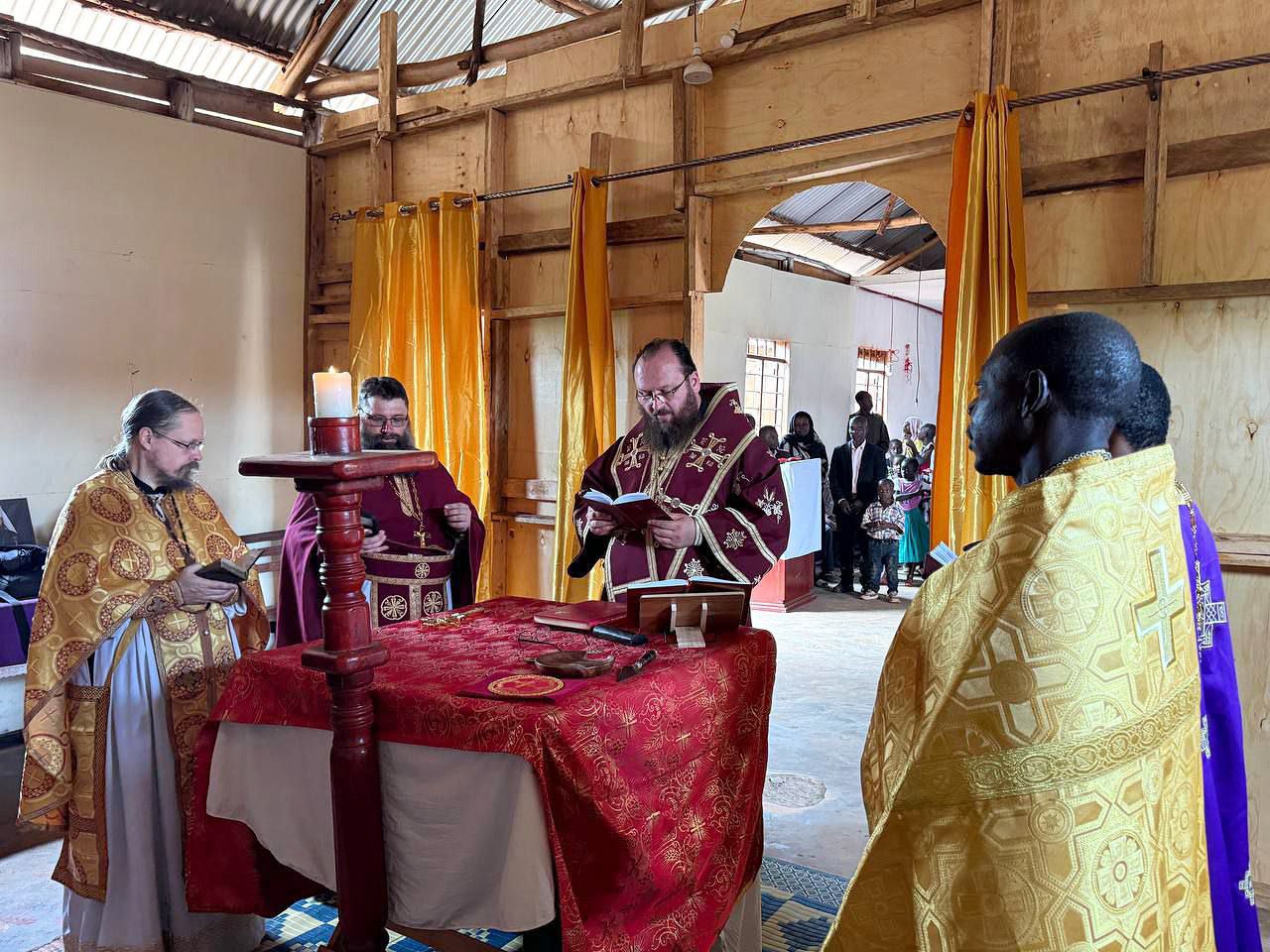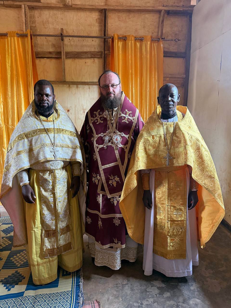 Его Высокопреосвященству сослужили председатель Миссионерского отдела Патриаршего экзархата Африки иерей Георгий Максимов, благочинный округа иеромонах Силуан (Браун), благочинный приходов Южно-Африканской епархии в Руанде иерей Петр Бикамумпака, клирик Успенского прихода в Руанде иерей Дамиан Душимимана и клирики Восточного благочиния Уганды.