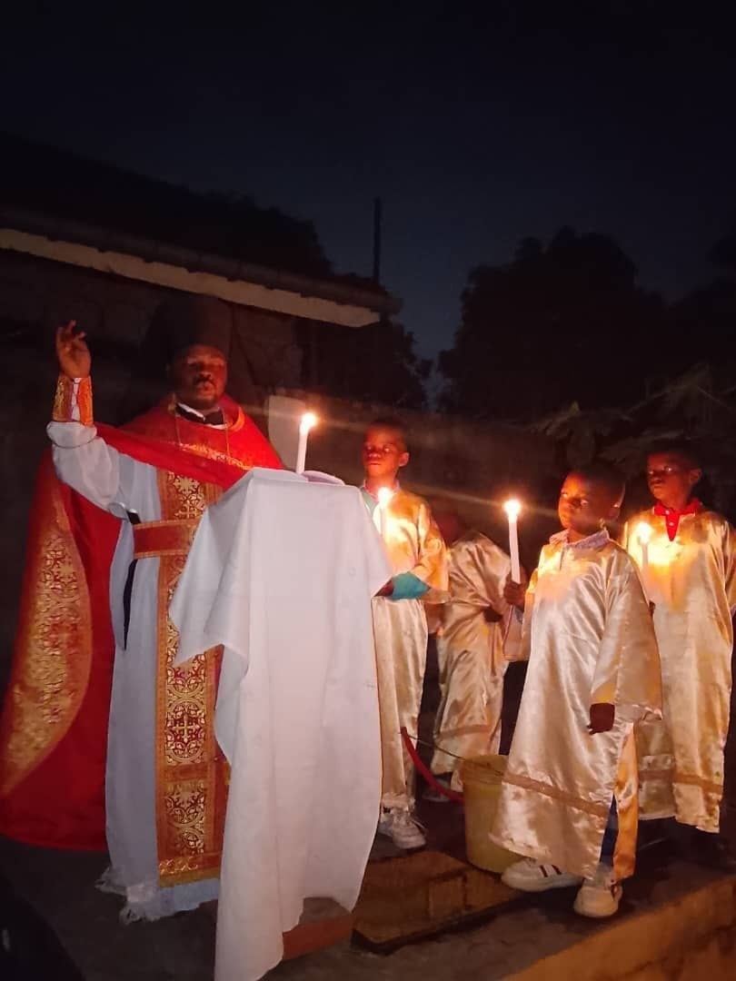 В Пасхальную ночь на приходе святителя Николая Чудотворца богослужения совершили благочинный приходов в ДР Конго иерей Николай Мусойя и иерей Иосиф Илунга.