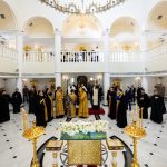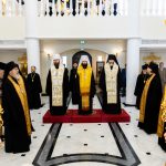 Перед началом работы круглого стола митрополит Волоколамский Антоний, митрополит Каирский и Северо-Африканский Константин и епископ Луховицкий Евфимий в сослужении участников круглого стола совершили молебен перед началом всякого доброго дела в храме святого апостола Филиппа в Шардже.