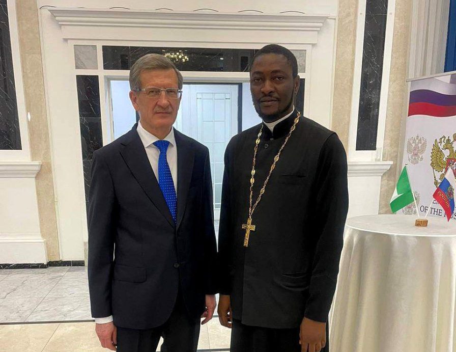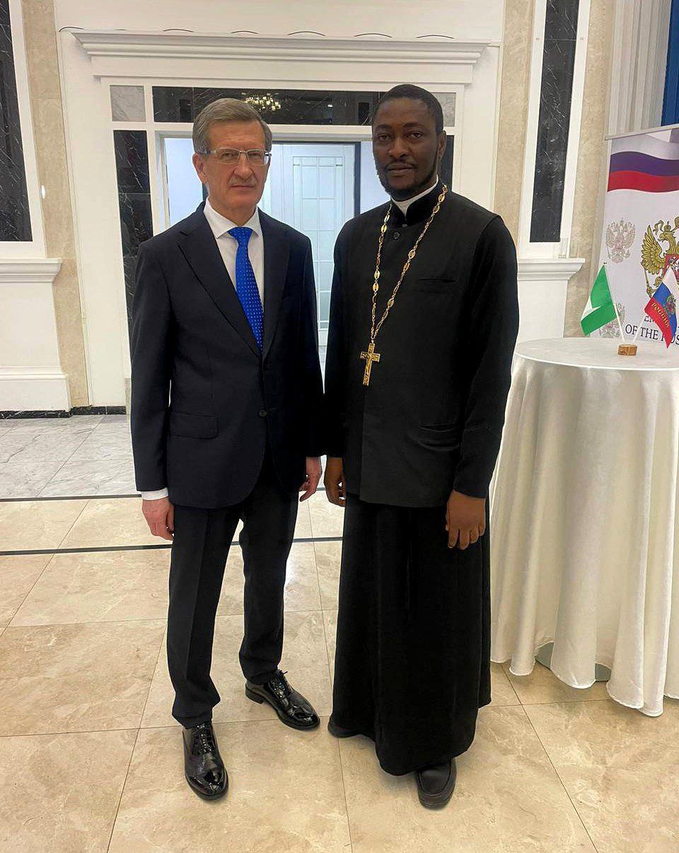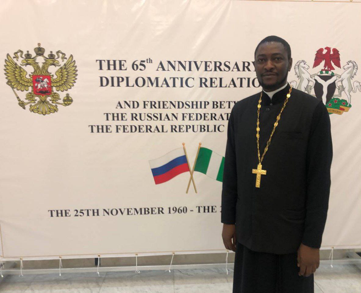 По случаю памятной даты на торжественный прием в Посольство России в столице Нигерии г. Абуджа был приглашен благочинный приходов Северо-Африканской епархии в Нигерии иерей Даниил Агбаза.