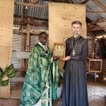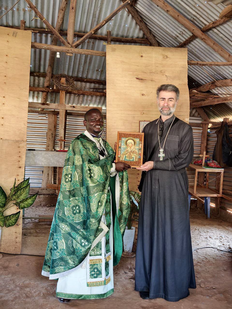 В храме святителя Афанасия протоиерей Тигрий обратился со словом к собравшимся, передал благословение Патриаршего экзарха Африки митрополита Константина, произнес поучение об основах христианской жизни и вручил настоятелю прихода иерею Феодору Оуру икону Божией Матери «Семистрельная».