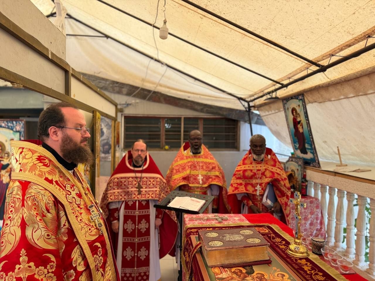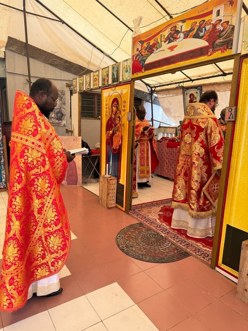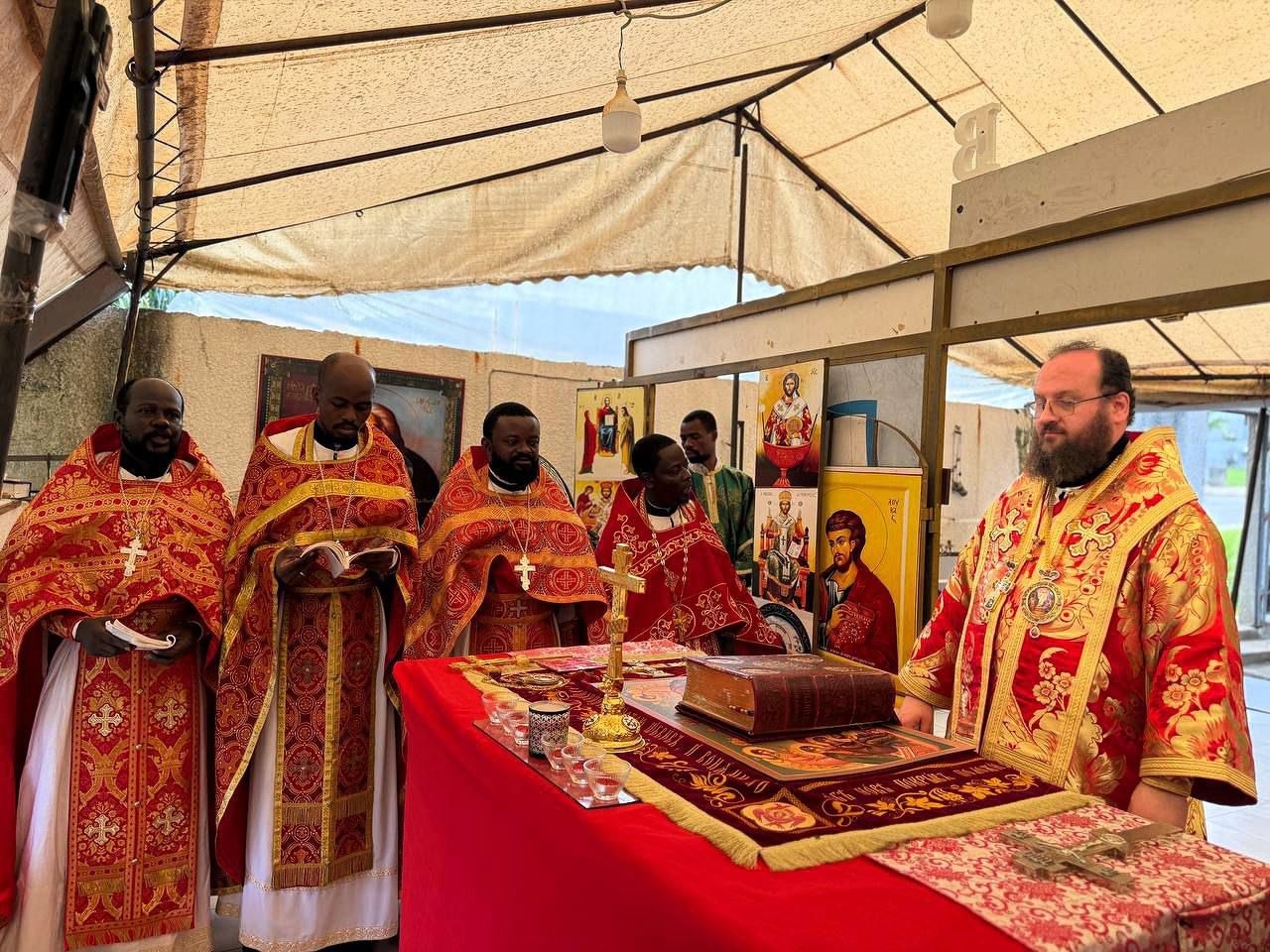 Его Высокопреосвященству сослужили иерей Георгий Максимов и духовенство Западноафриканского благочиния: благочинный Западноафриканского церковного округа, настоятель прихода иерей Парфений Дансу и клирик прихода иерей Николай Ншо (Кот-д’Ивуар), иерей Стефан Ассонгба и иерей Евгений Джоссу (Бенин), иерей Лука Сомда (Буркина-Фасо), иерей Борис Питассо (Того).