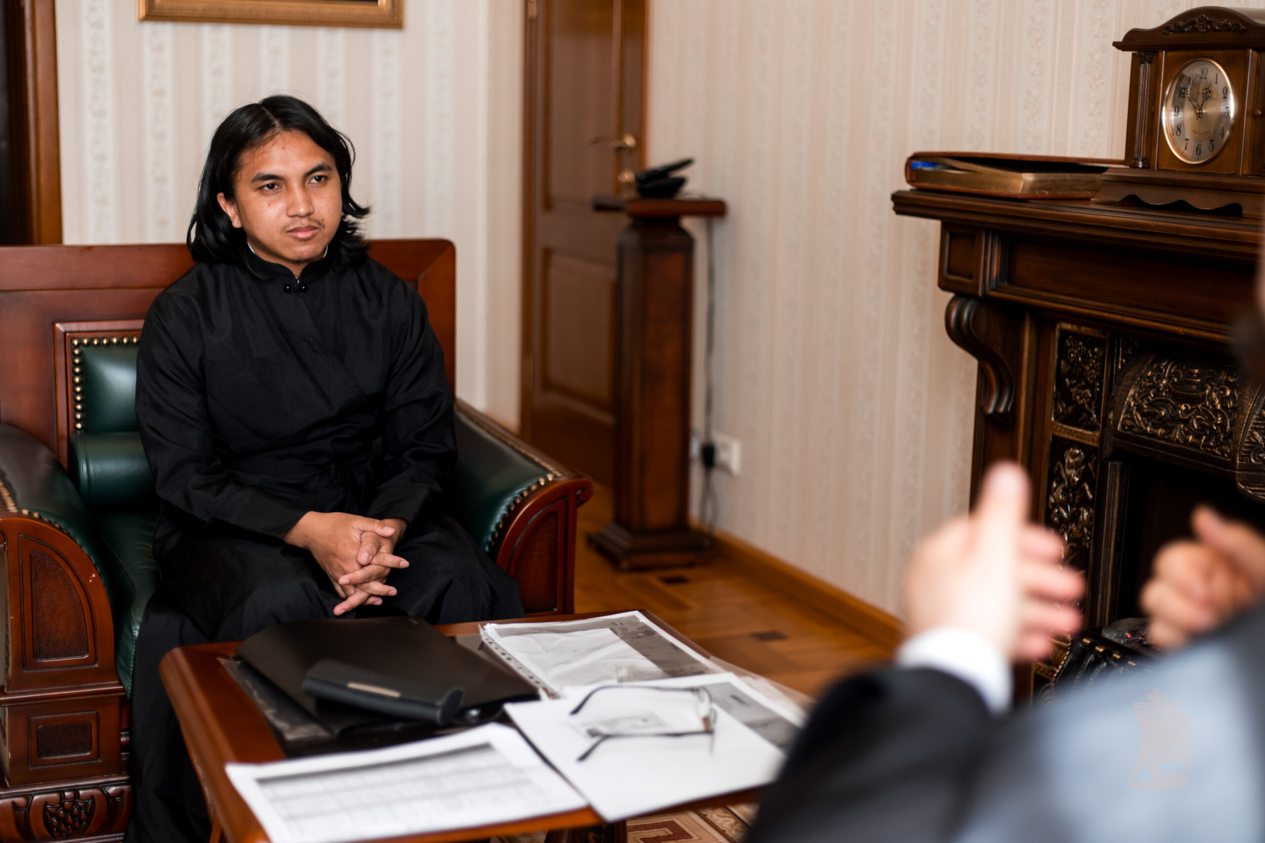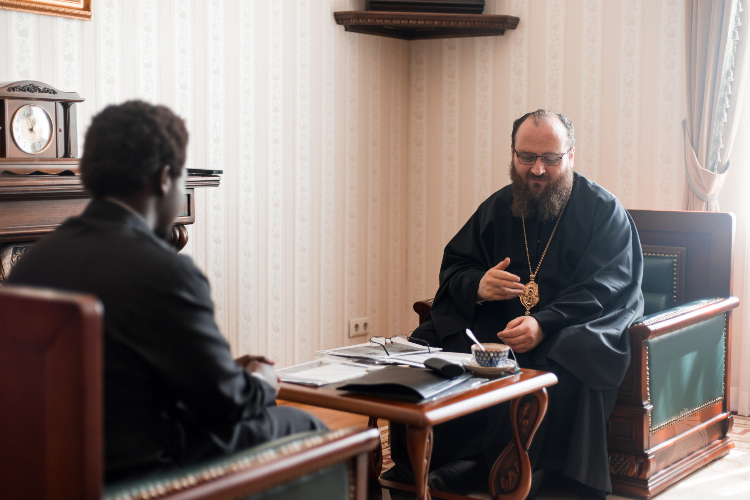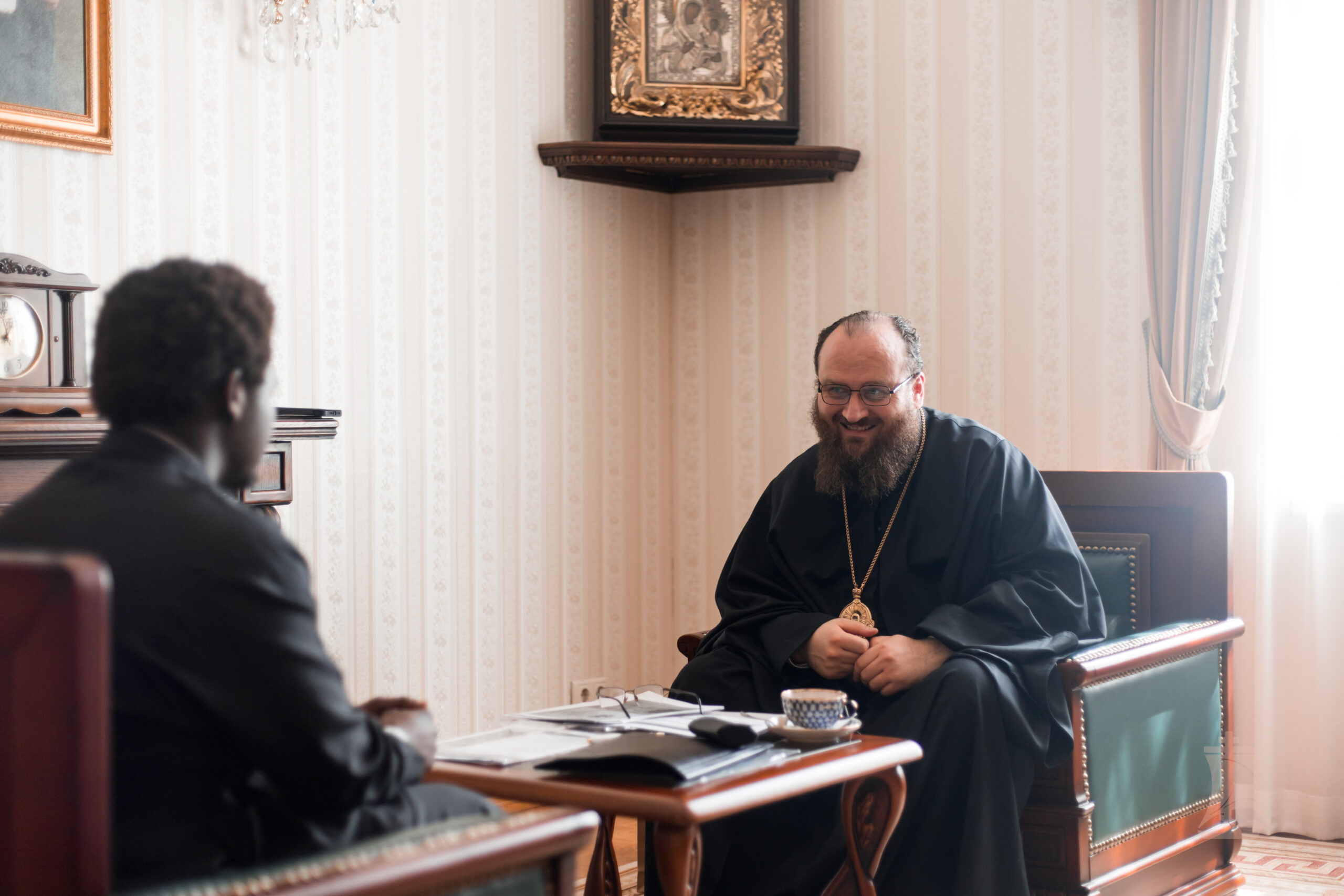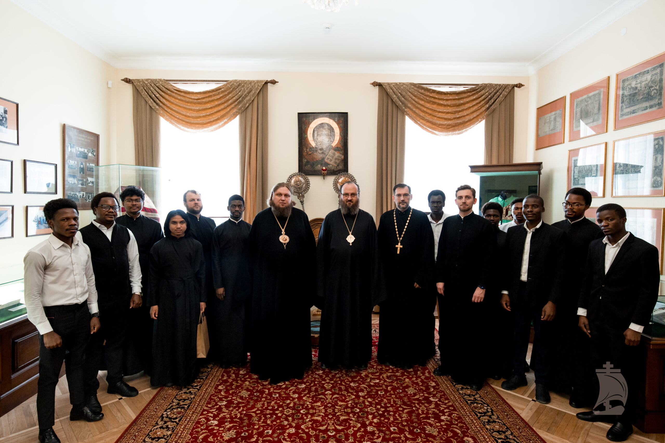 Владыку принял ректор академии епископ Петергофский Силуан. Преосвященные архипастыри обсудили текущую ситуацию и план дальнейшего сотрудничества Экзархата и академии в отношении африканских студентов. В завершение встречи архиереи обменялись памятными подарками.