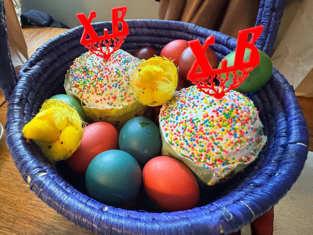 По окончании Литургии священники освятили пасхальные куличи, яйца и другие угощения.