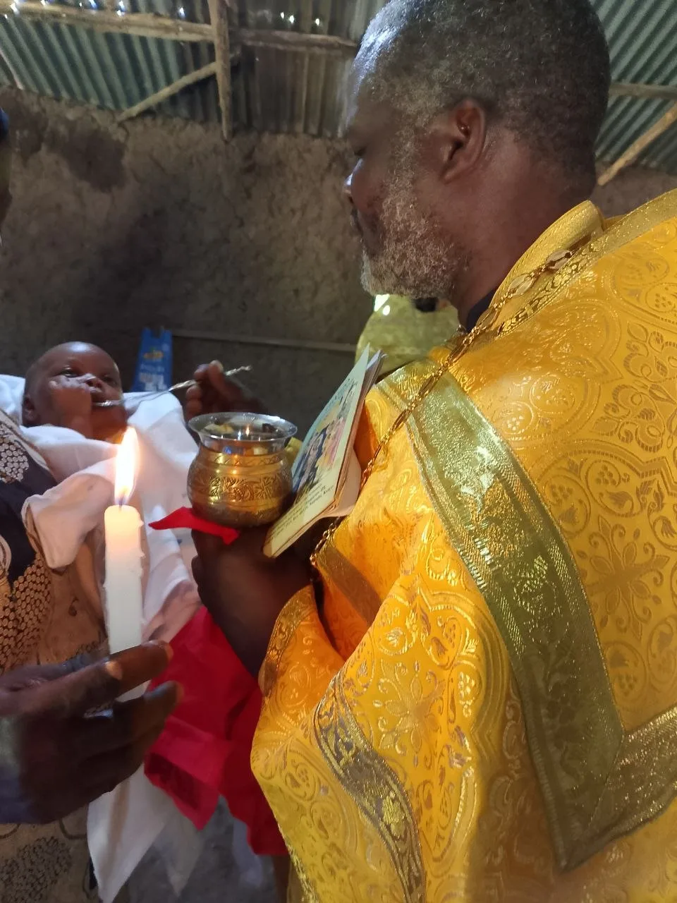 Перед богослужением священники совершили таинство Крещения младенца Глории, дочери прихожан.