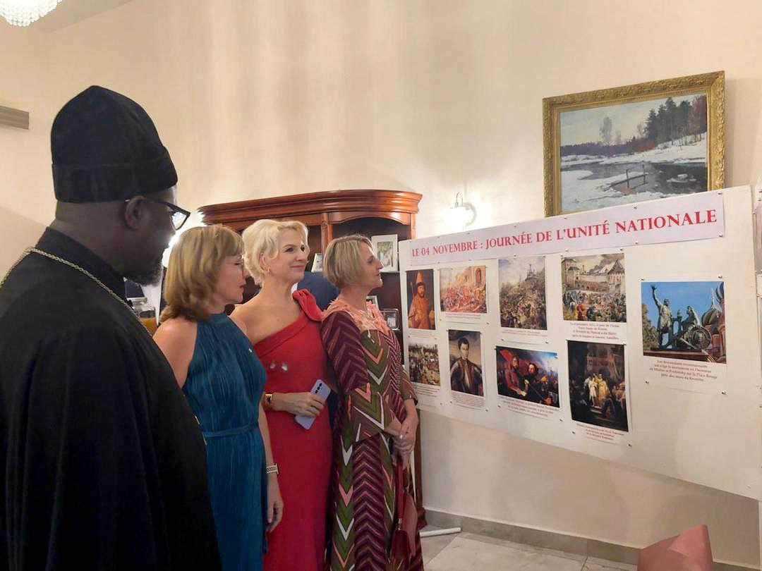 Гости ознакомились с фотовыставкой, подготовленной посольством ко Дню народного единства.