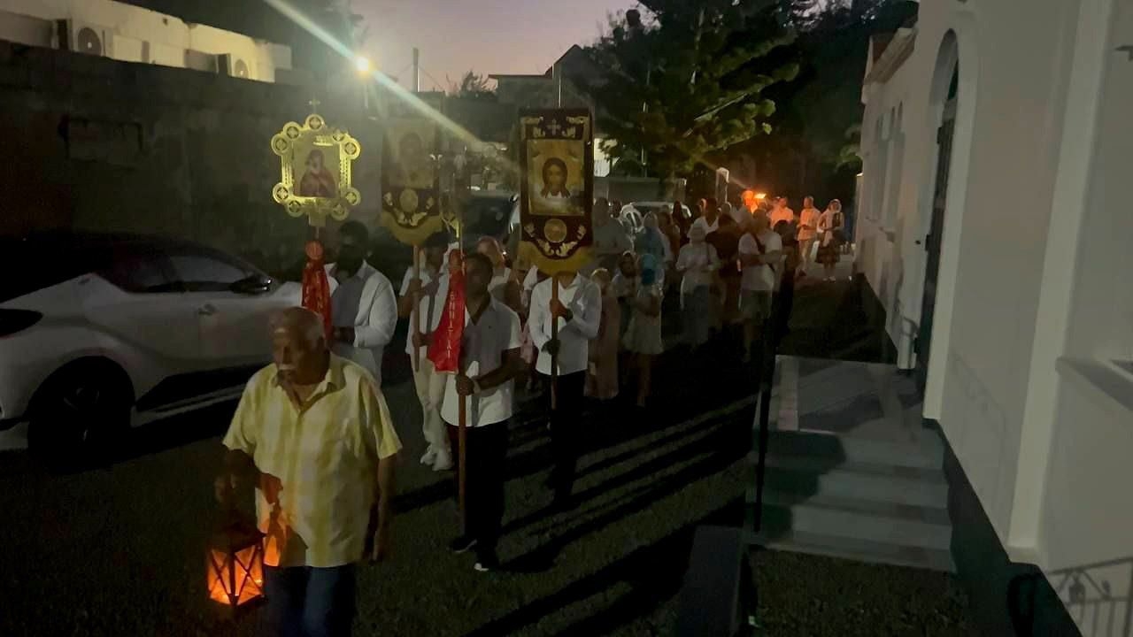 12 апреля 2026 года, в праздник Светлого Христова Воскресения, в храме Преображения Господня в столице Маврикия г. Порт-Луи настоятель храма протоиерей Димитрий Матиенко совершил Божественную литургию.