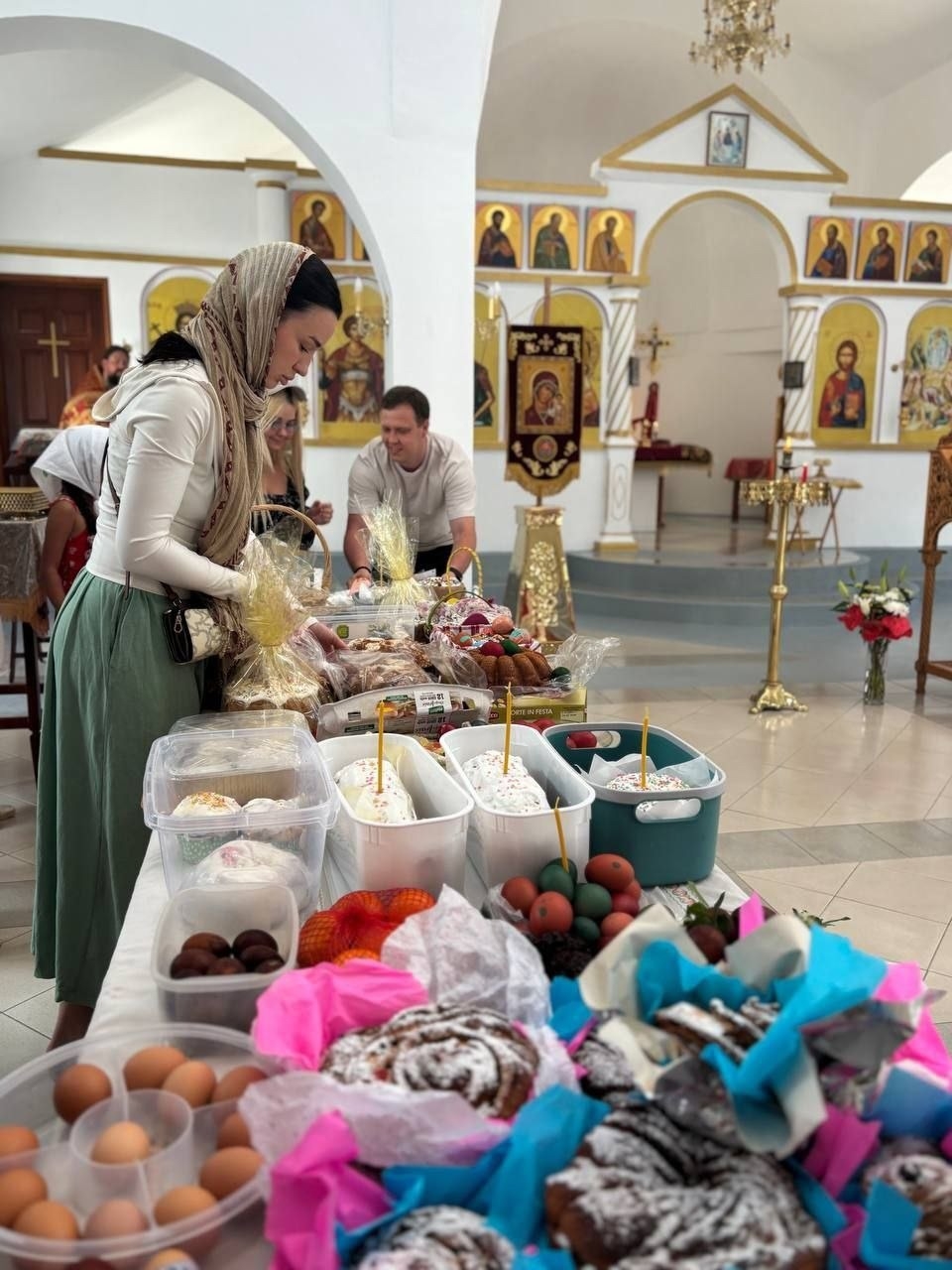 После богослужения отец Димитрий освятил традиционные пасхальные снеди.