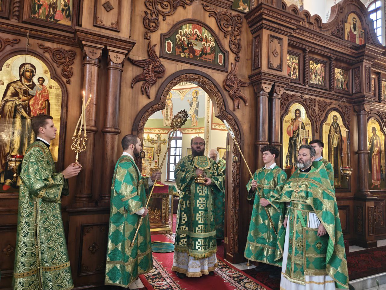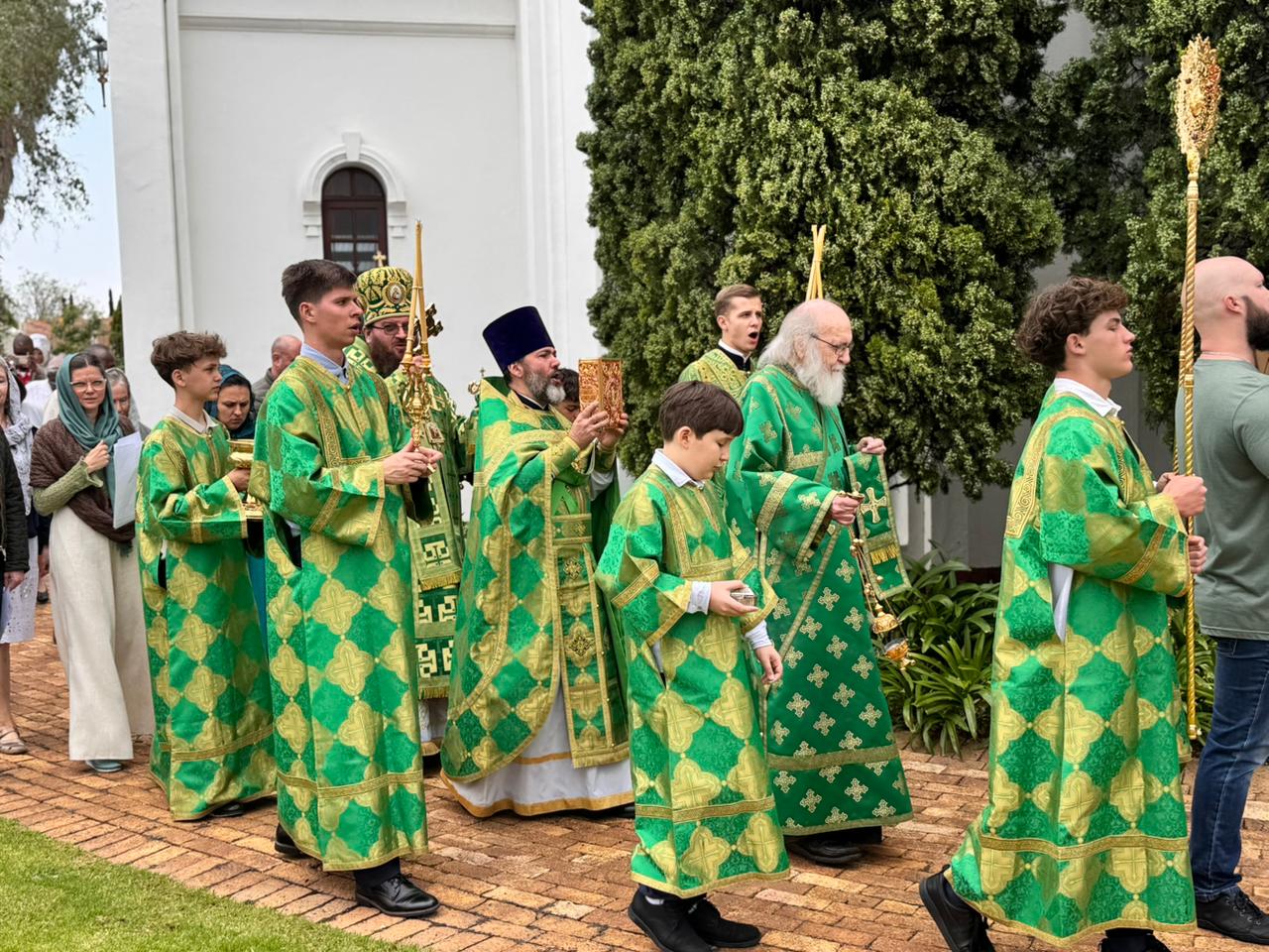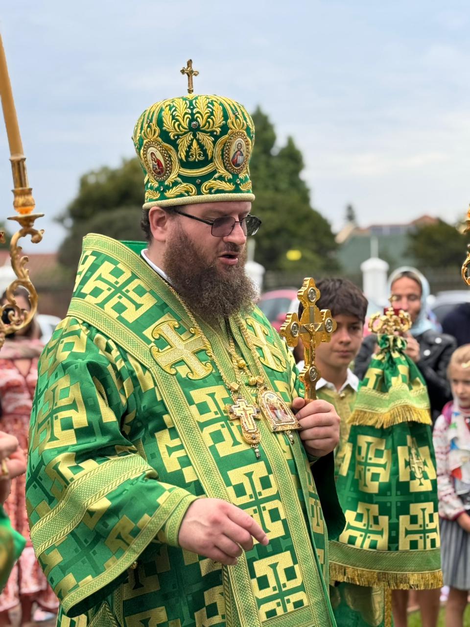 Его Высокопреосвященству сослужили благочинный Южноафриканского церковного округа (ЮАР) и настоятель Сергиевского кафедрального собора протоиерей Даниил Луговой и клирик собора диакон Стефан Хейз.