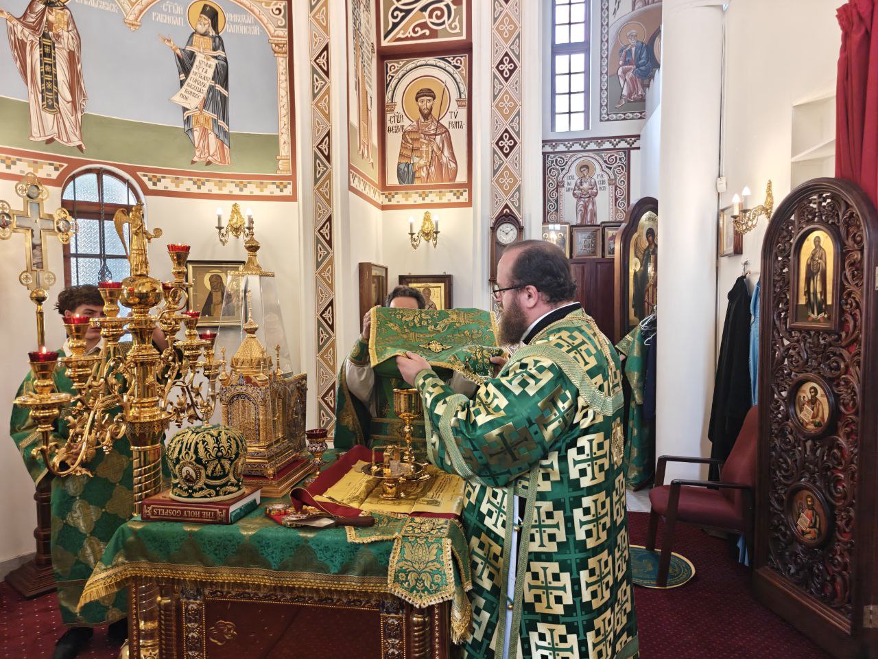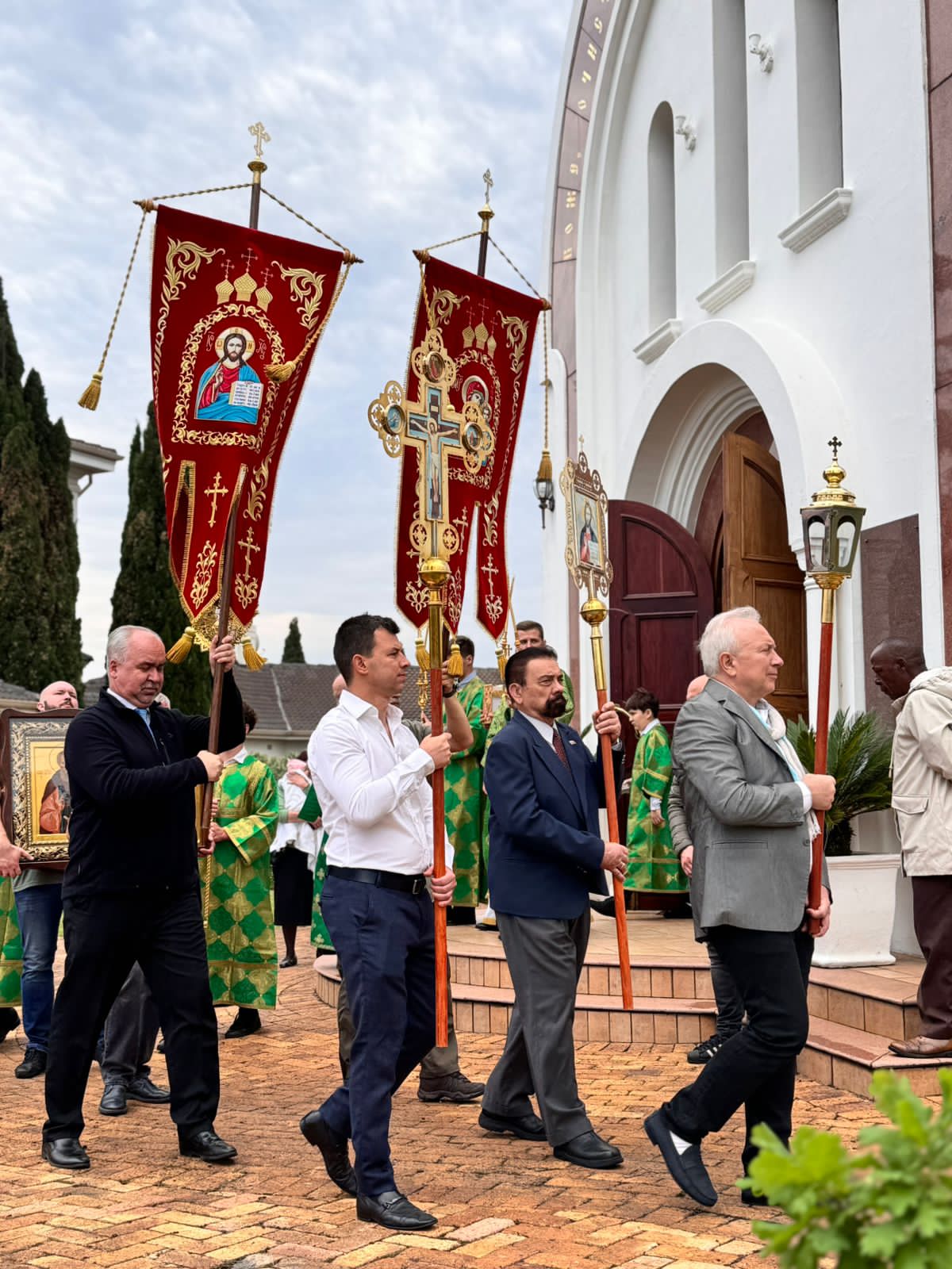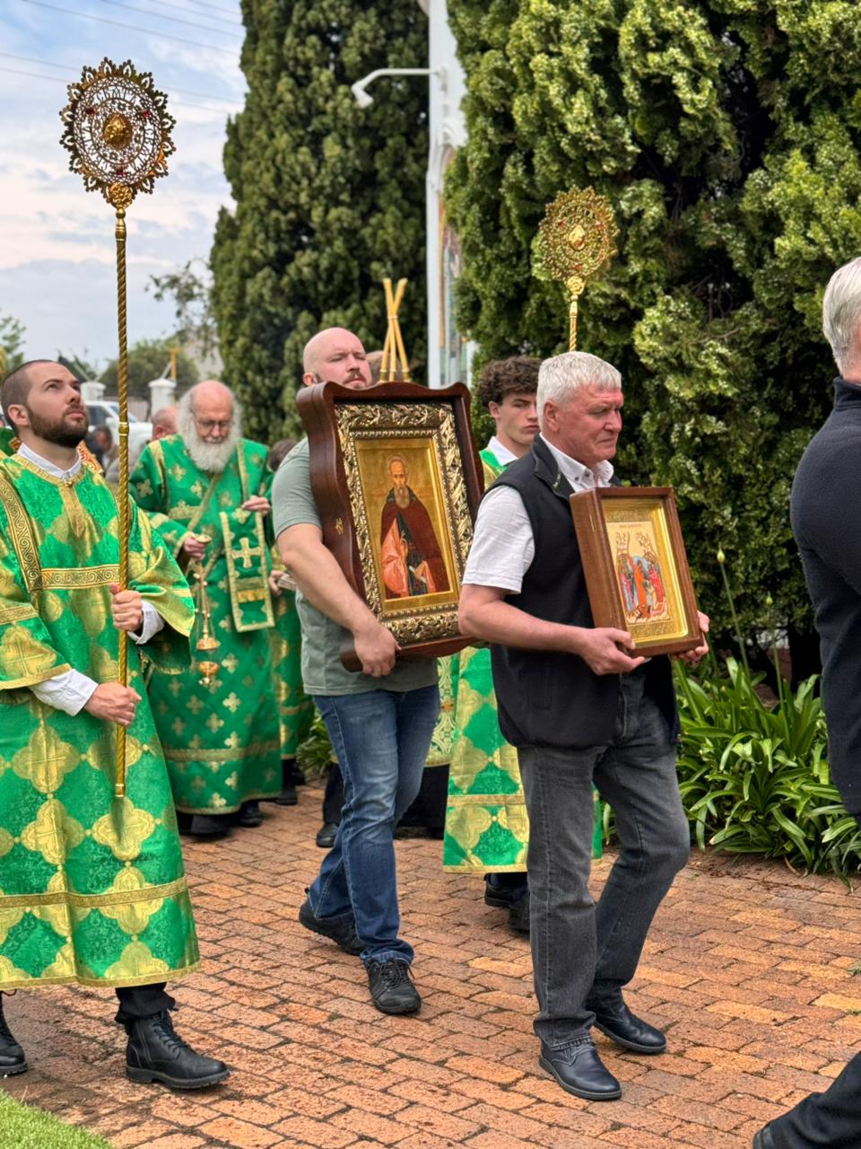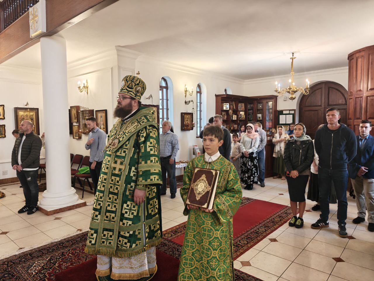 Его Высокопреосвященству сослужили благочинный Южноафриканского церковного округа (ЮАР) и настоятель Сергиевского кафедрального собора протоиерей Даниил Луговой и клирик собора диакон Стефан Хейз.
