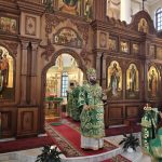 Затем митрополит Константин произнес архипастырское слово и поздравил собравшихся с престольным праздником. Настоятелю собора протоиерею Даниилу архиерей подарил наперсный крест с украшениями.