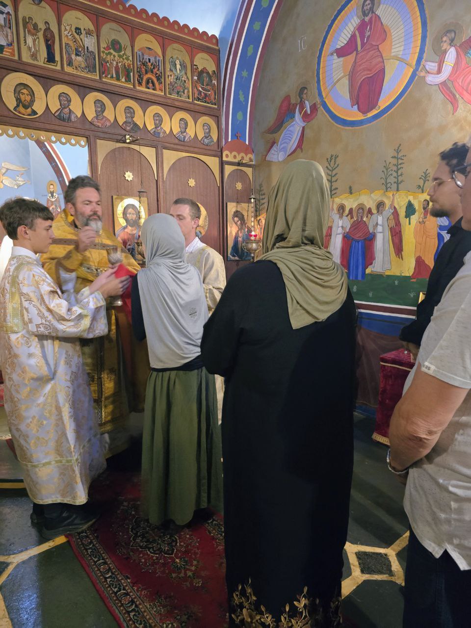 После богослужения общение продолжилось за трапезой. В теплой атмосфере собравшиеся обсуждали вопросы духовной жизни и церковных традиций.
