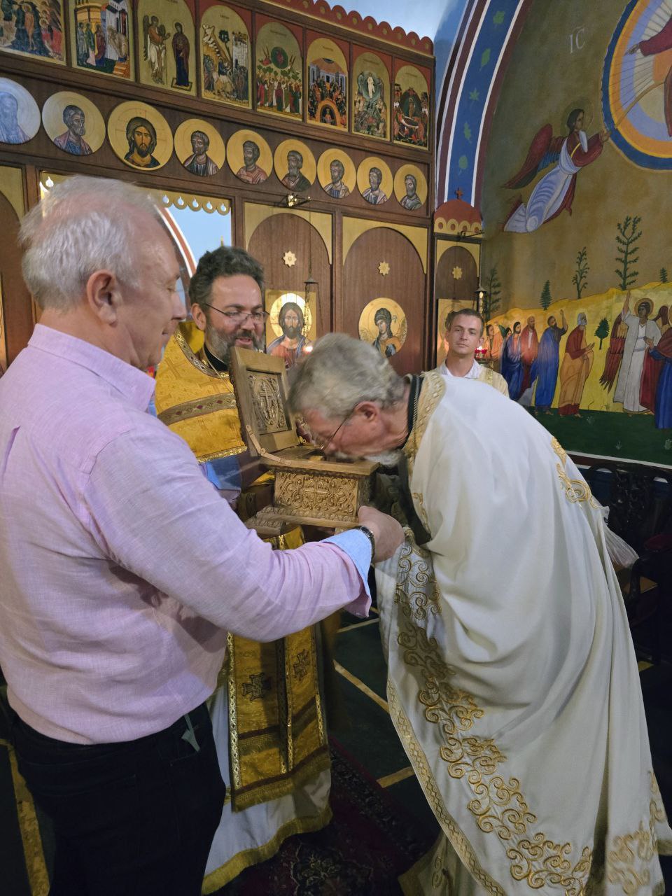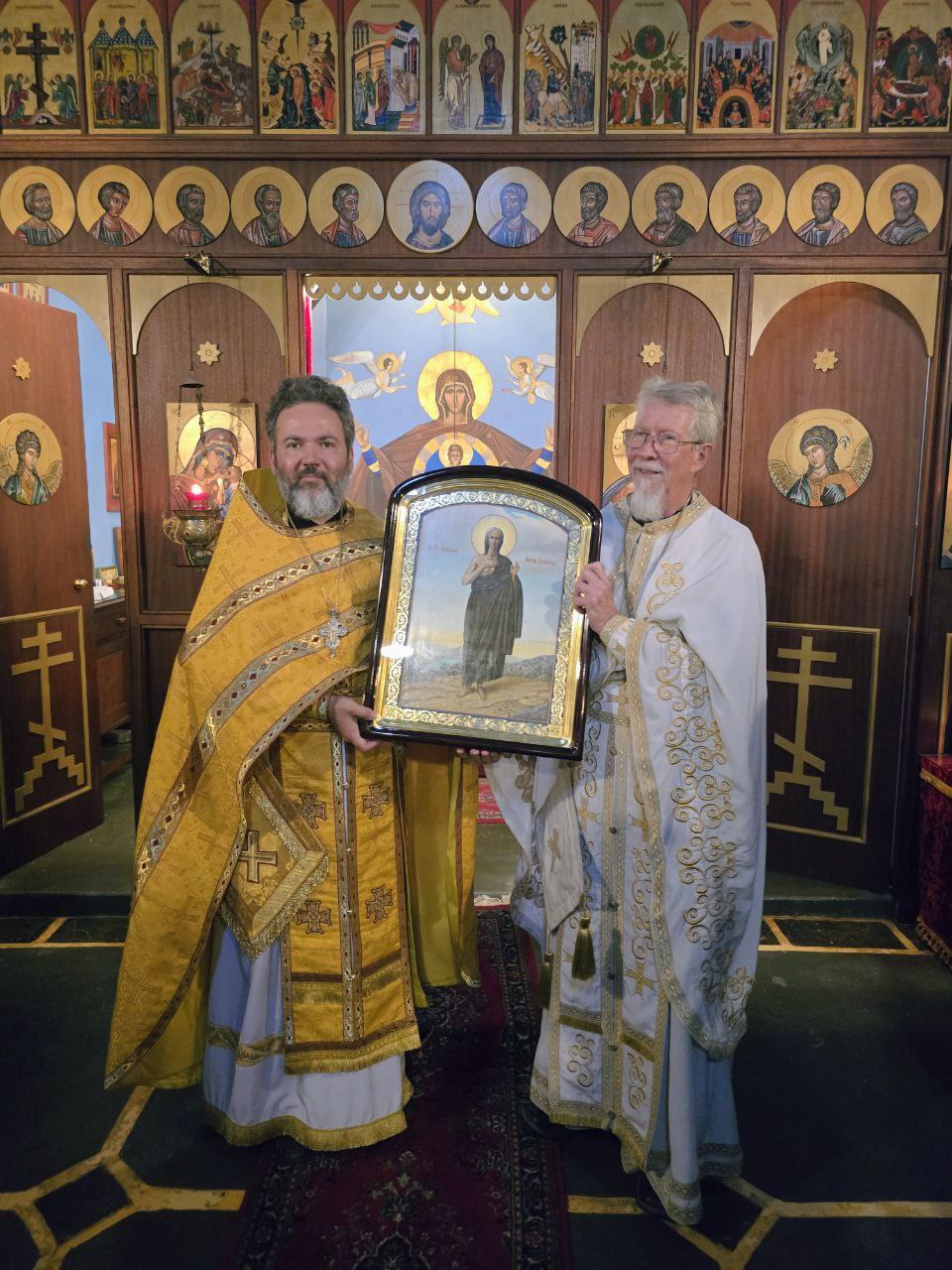 По окончании богослужения прихожане кафедрального Сергиевского собора преподнесли в дар приходу в Робертсоне икону преподобной Марии Египетской и ковчег с мощами избранных святых.