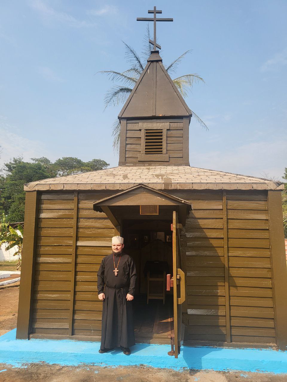 7 января 2025 года, в праздник Рождества Христова, в Русском доме в столице Центральноафриканской Республики г. Банги клирик Великолукской епархии иерей Анатолий Слободчиков совершил Божественную литургию.