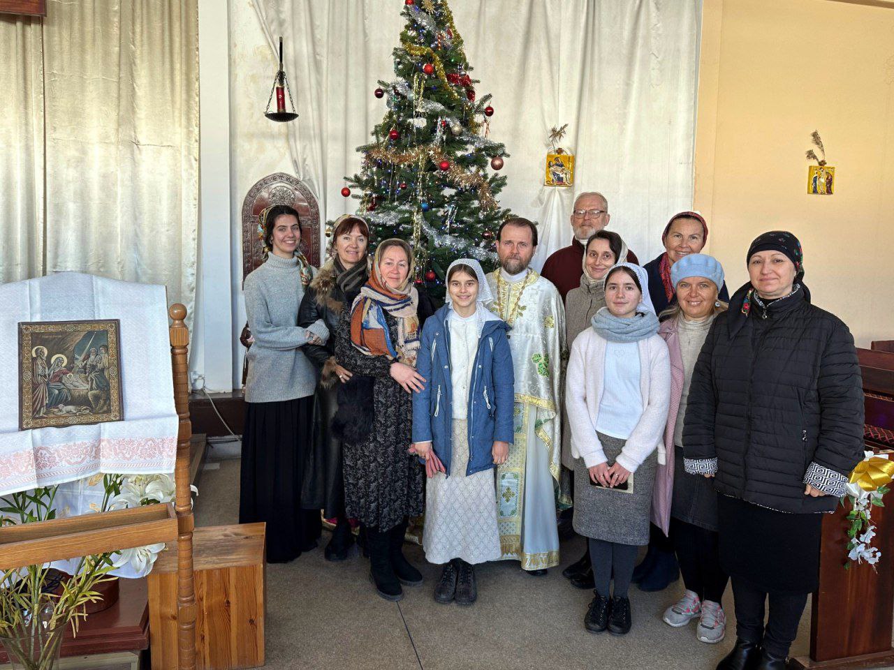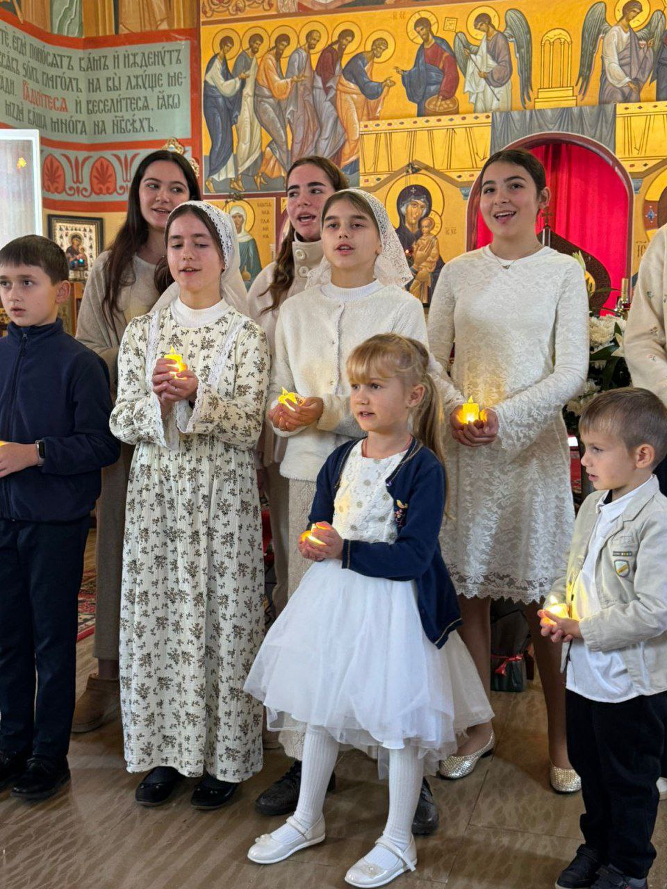 Затем состоялся концерт воскресной школы храма, на котором дети исполнили рождественские стихи и песни на нескольких языках.