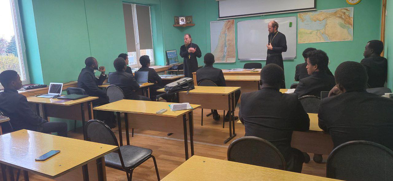 24 октября 2025 года состоялась рабочая встреча куратора издательской деятельности Духовно-просветительского центра во имя апостола и евангелиста Марка Патриаршего экзархата Африки иерея Анатолия Трушина с семинаристами из Бурунди, Камеруна, Кении, Конго, Мадагаскара, Мозамбика и Уганды, которые обучаются в Николо-Угрешской духовной семинарии.