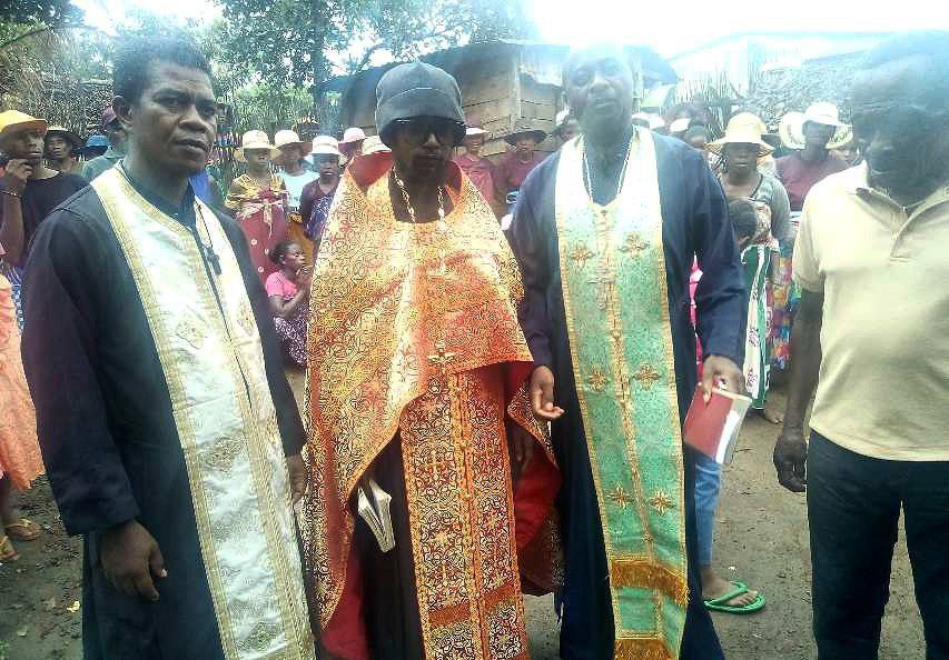 Заупокойное богослужение совершили благочинный Северного церковного округа Республики Мадагаскар иерей Василий Рандрианайву, иерей Андриан Рандрианайвусун и иерей Григорий Ракутунандрасана.