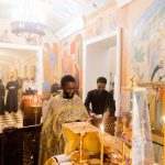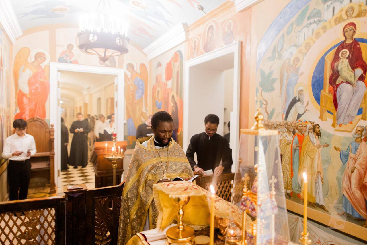 Богослужение возглавил архимандрит Захария (Мулингва), студент СПбДА из Танзании. Литургия совершалась на церковнославянском и иностранных языках.