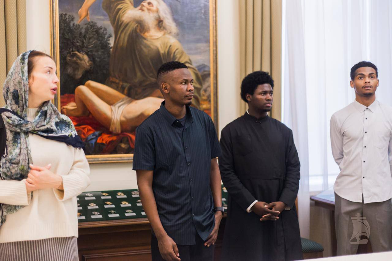 9 ноября 2025 года Санкт-Петербургскую духовную академию посетила группа прихожан собора апостола Андрея — студентов из стран пастырской ответственности Патриаршего экзархата Африки, обучающихся в вузах Санкт-Петербурга.