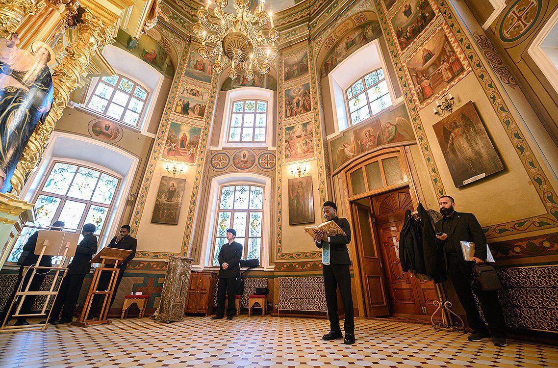 За богослужением пел хор студентов Академии из Бенина, Габона и Конго. Отдельные песнопения исполнялись на греческом и церковнославянском языках.