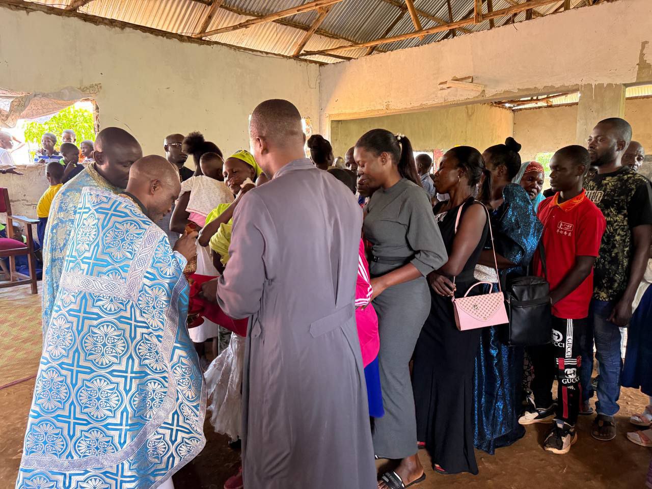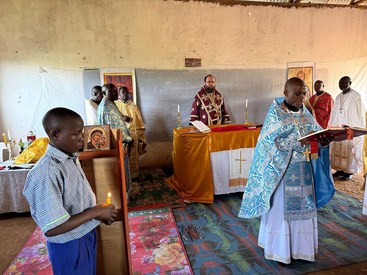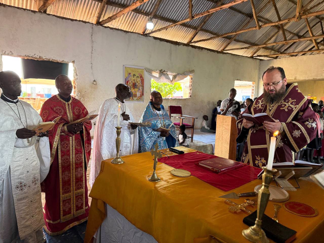 На богослужении молились прихожане и воспитанники школы, действующей на приходе. Литургия совершалась на английском, луганда и церковнославянском языках.