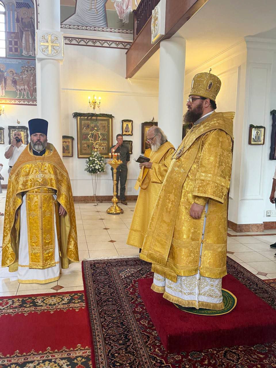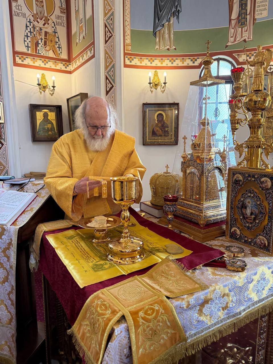Его Высокопреосвященству сослужили благочинный церквей Южно-Африканской епархии в ЮАР и настоятель собора протоиерей Даниил Луговой и клирик прихода диакона Стефан Хейз.