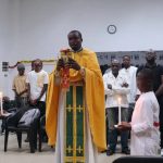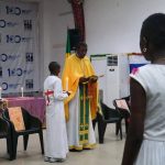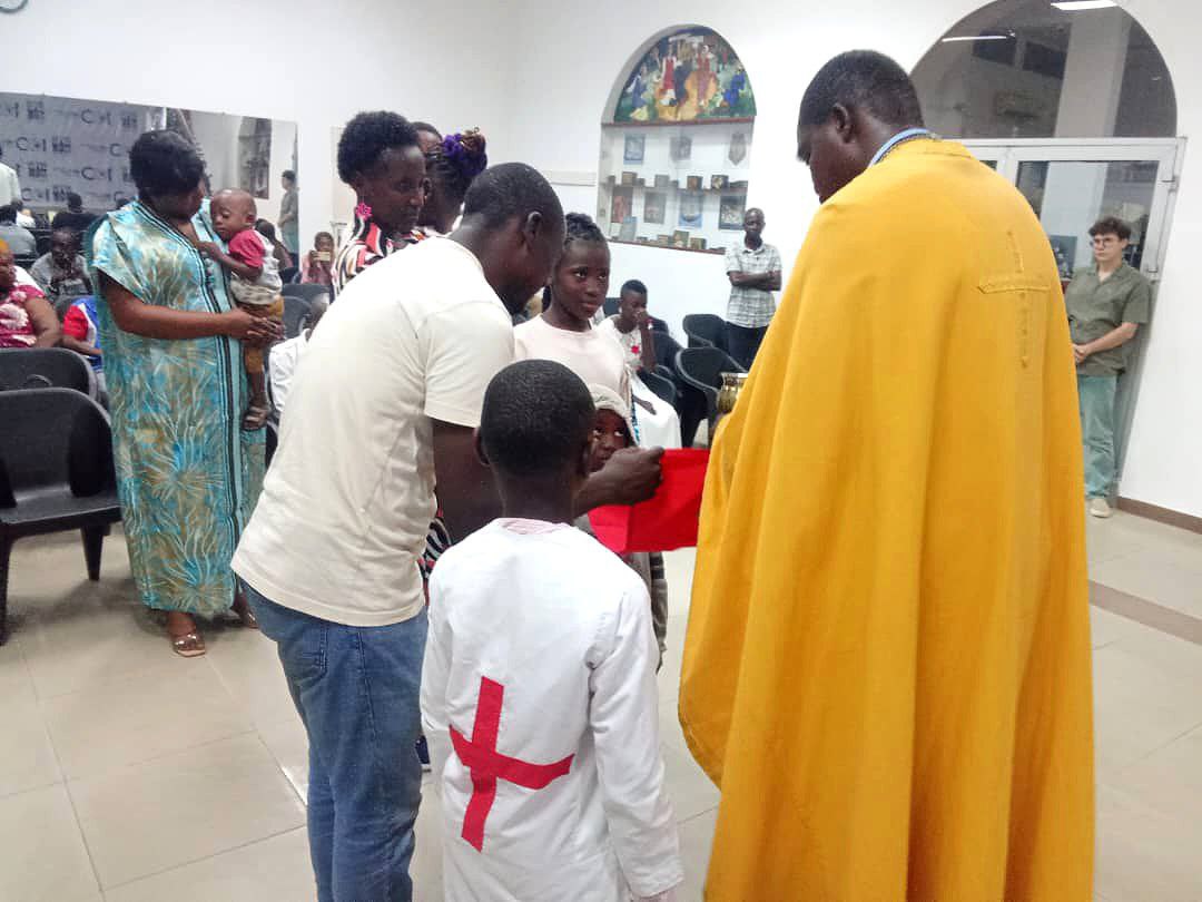 На богослужении молились верующие прихода Рождества Иоанна Предтечи в Браззавиле и местные жители.