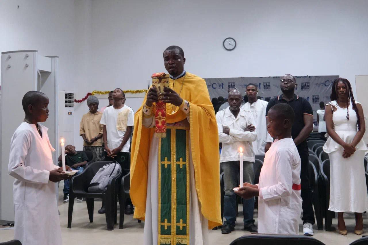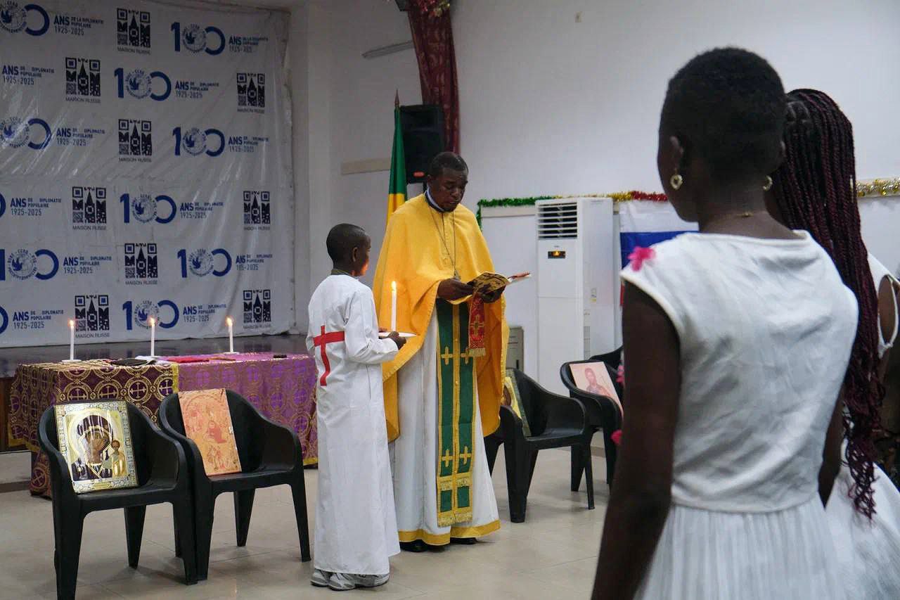 В ночь с 6 на 7 января 2026 года праздник Рождества Христова встретили верующие в Республике Конго. В стенах Русского дома в столице страны г. Браззавиль клирик Южно-Африканской епархии в Конго иерей Тимофей Нзебе совершил Божественную литургию.