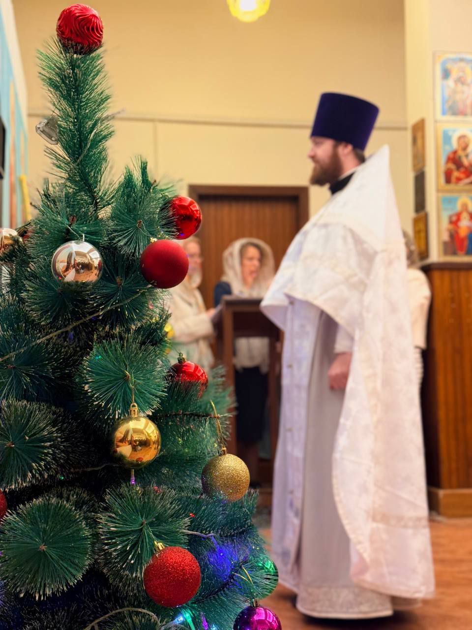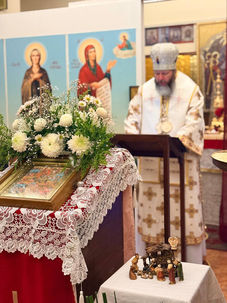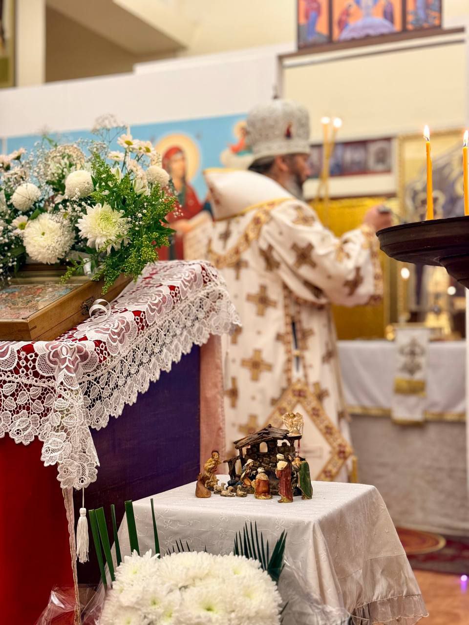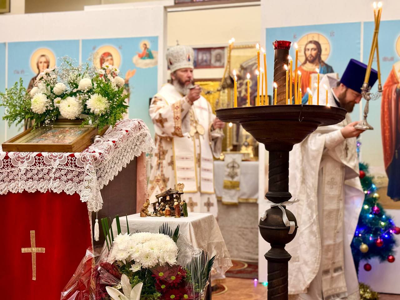 Богослужение завершилось славлением празднику, после чего архипастырь обратился к собравшимся с Рождественским поздравлением.