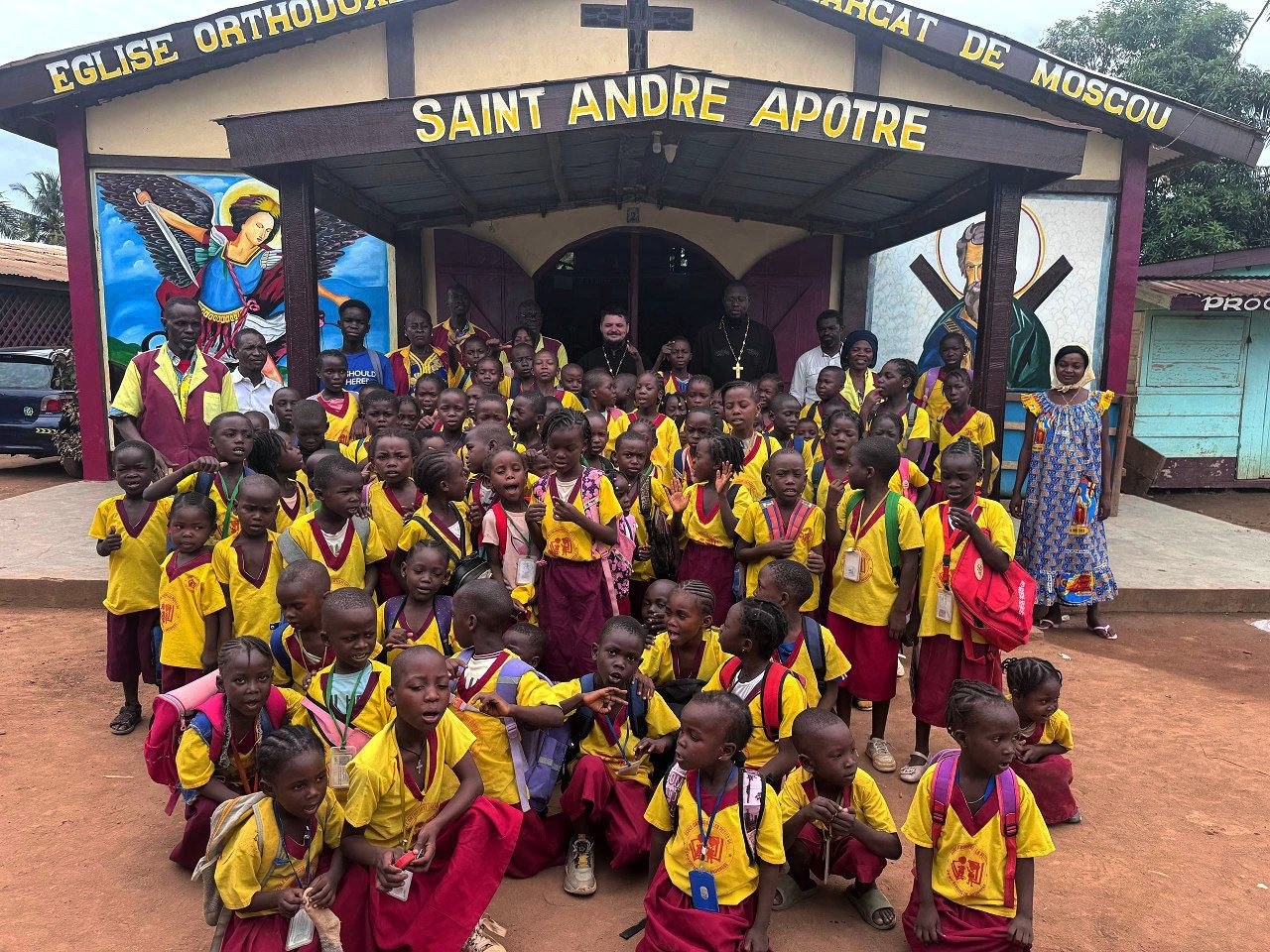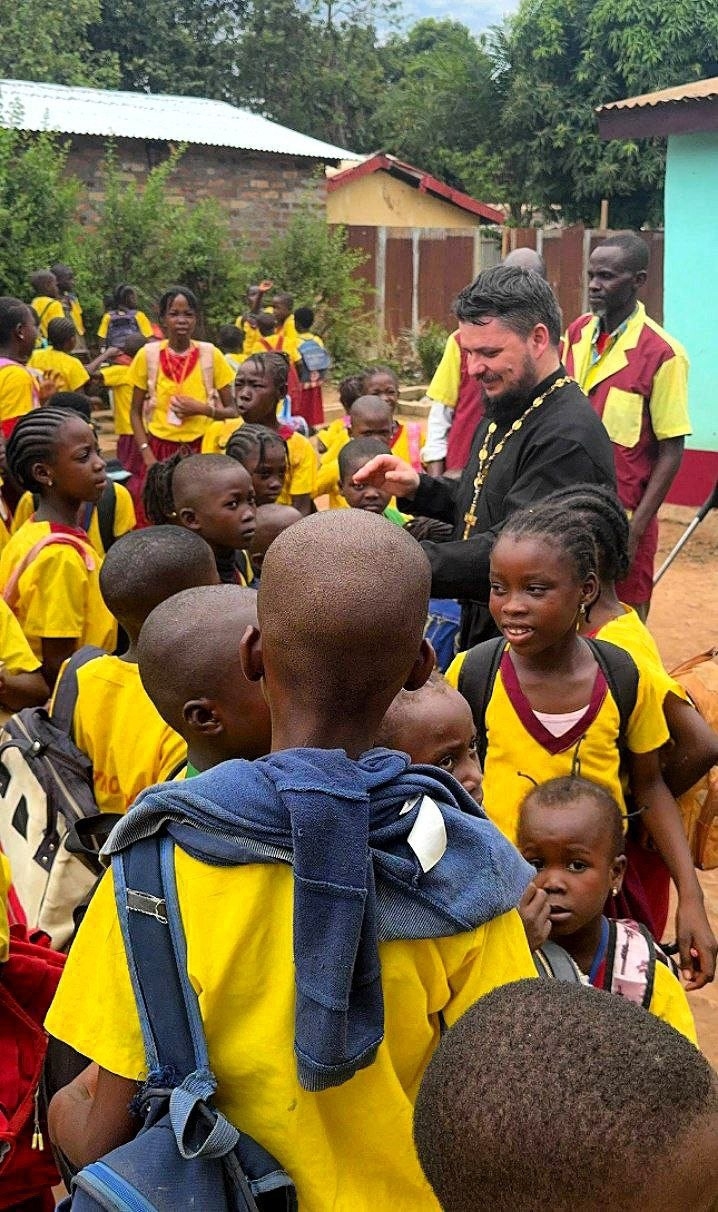 В Светлый понедельник иерей Анатолий посетил школу преподобного Сергия Радонежского в пригороде столицы Бимбо, где встретился с благочинным приходов в ЦАР и директором школы иереем Сергием Воемавой.