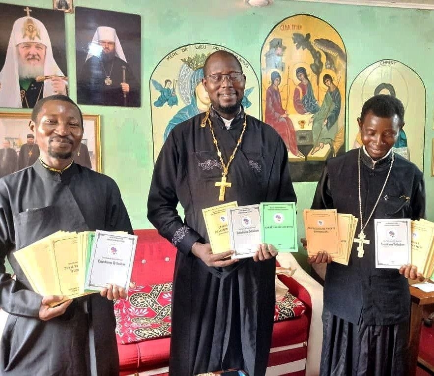 Отец Анатолий передал экземпляры Евангелия и катехизиса на французском языке, пособия к нему и молитвословы.