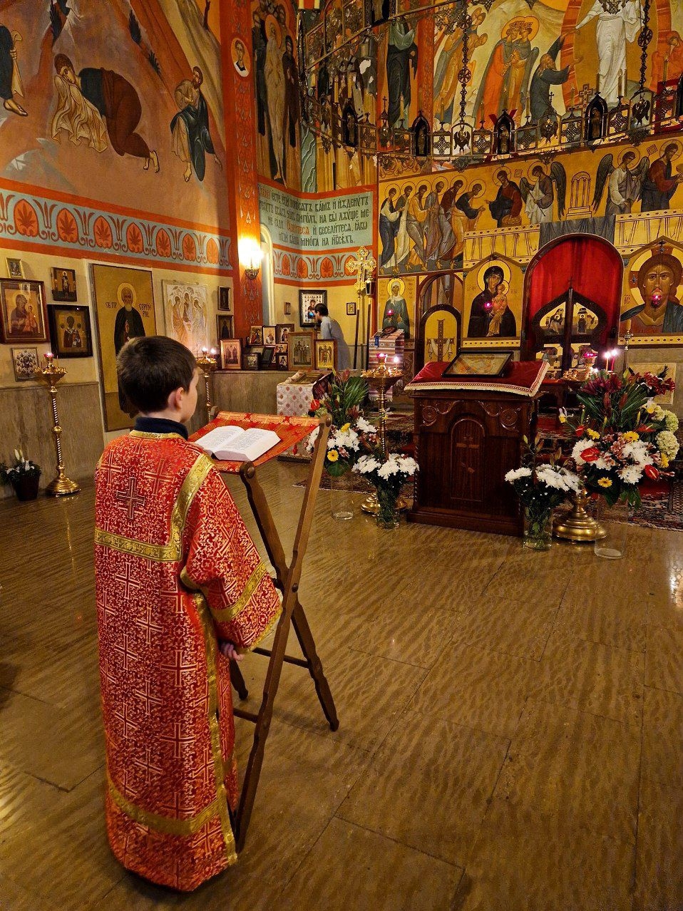Пасхальное Евангелие читалось на церковнославянском, английском и французском языках.
