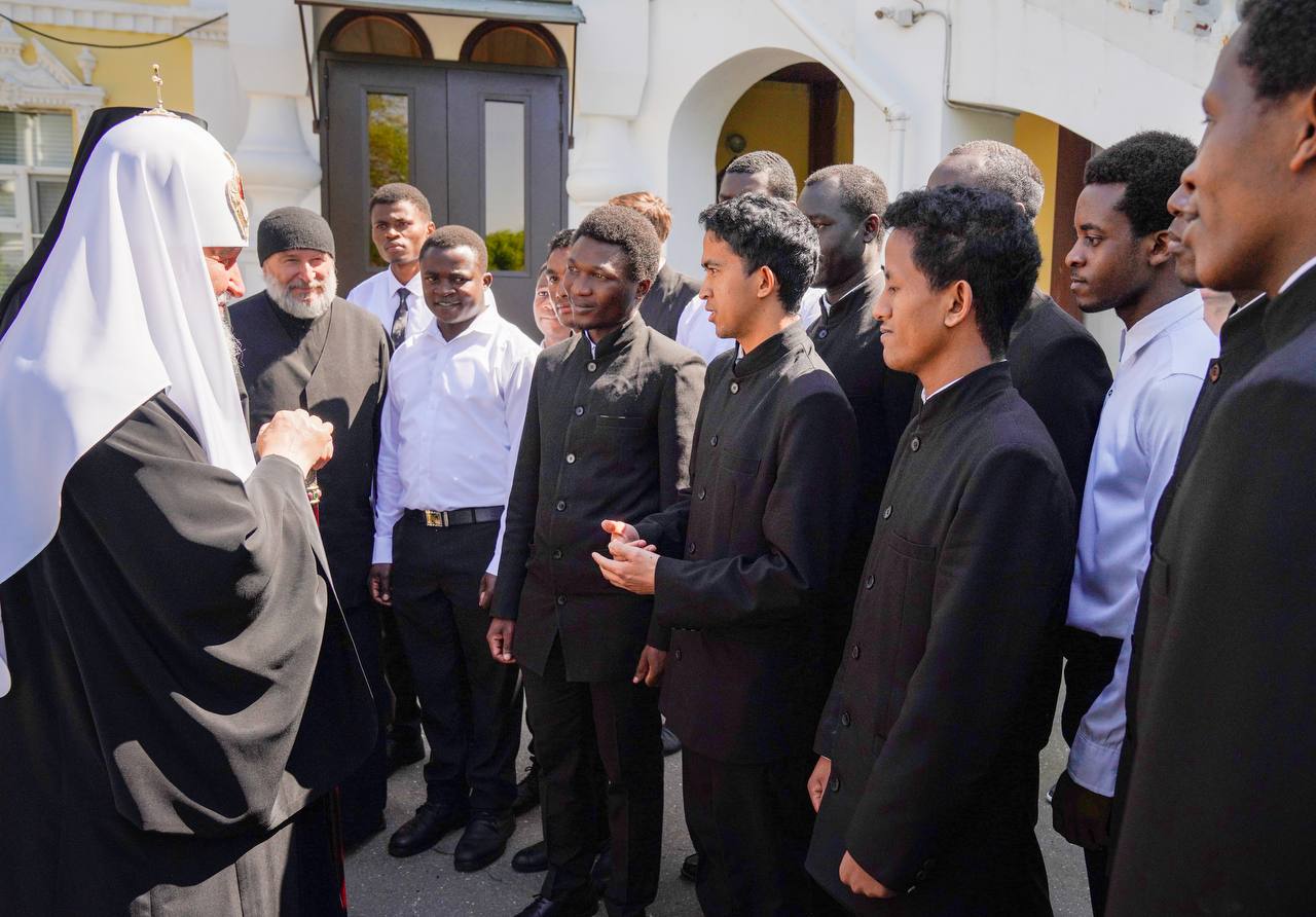 По окончании богослужения состоялась беседа Его Святейшества со студентами духовной семинарии из стран Африки.