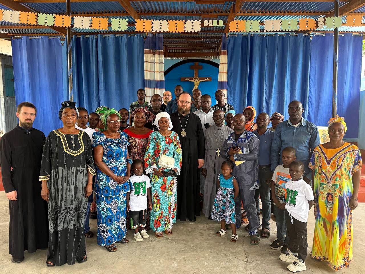 На богослужении присутствовали почетный консул Российской Федерации в Республике Конго Д.М. Нгебана, благочинный приходов Патриаршего экзархата Африки в Конго иерей Силуан Нкунку, местные жители и соотечественники. После богослужения владыка провел духовную беседу с верующими.